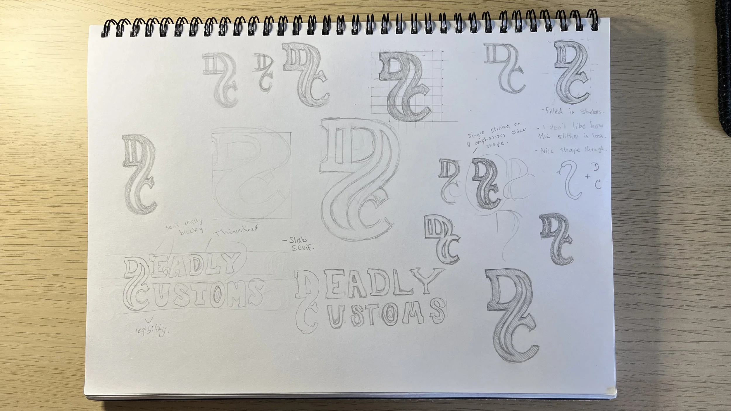 The magic took place in my sketchbook, where I fleshed out all possible directions the logomark could take with the given personality and brand name.